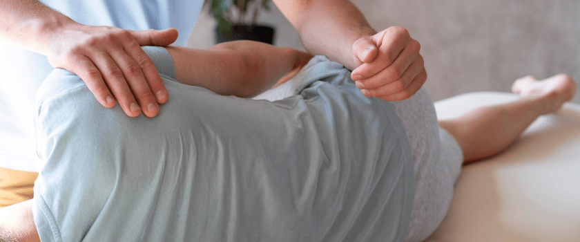 • Iradierea durerii: Durerea se poate extinde către fese, coapse, gambe și chiar până la degete (în special în cazul leziunilor nervoase, cum ar fi sciatica).